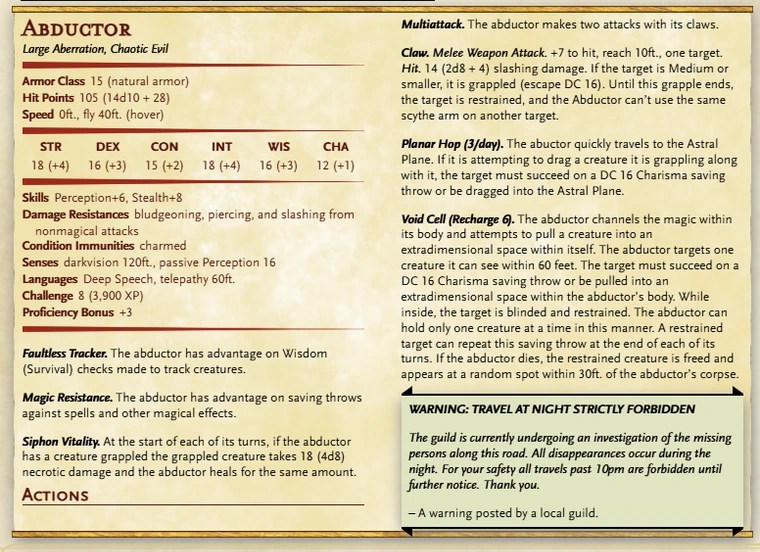 Despite being frail as an individual, Aetheriphans in a swarm will rush towards danger or a potential meal and attempt to use their overwhelming numbers to subdue their quandary. Because of the size of their swarm (Huge), an Aetheriphan Swarm is not easy to fully clear and they cna prove to be resilient with their 16 CON. Additionally they’re incredibly nimble with both a 60ft. hovering speed and a 16 in DEX making them incredibly hard to lock down. Sadly, all of their other stats falter with only a 10 in WIS being their next highest and a 6 in CHA, 4 in INT, and 3 in STR means the Aetheriphans will be able to see threats or prey from a far, but they won’t know how ton adapt if a prey proves difficult. They have one plan of attack and they’re going to stick with it, no matter how much of the swarm falls.